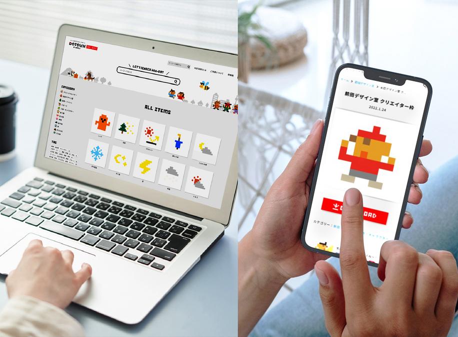 "DOTOWN" is a website that you can download "ARA-DOTS", which is pixel art with the lowest possible resolution by the online community "Maeda Design Room".We call the pixel art created according to our own standards "ARA-DOTS". At DOTOWN, we have achieved a remarkable feat by creating materials that not only evoke a delightful sense of nostalgia but also possess immense commercial appeal. Through our innovative process known as 'reverse evolution,' we intentionally coarsen the pixels to transport users to a cherished era of retro gaming. With over 800 meticulously crafted materials, all completely free for commercial use, DOTOWN is the ultimate resource for businesses and individuals seeking to infuse their projects with a touch of vintage charm.