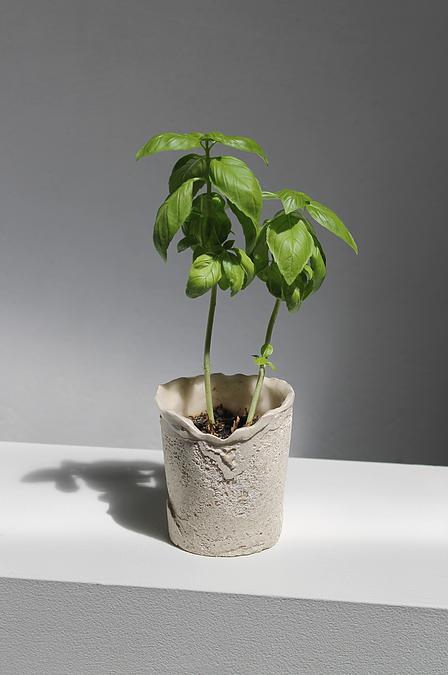 Eggshell Ceramic Re-Planter is a growing pot made of used consumer eggshells. This material contains a valuable nutrient for human, animal and plants; calcium carbonate. The planter functions as a growing cup and gives back its nutrients to the soil during the repotting of your plants. 10 billion eggs a year are produced in the Netherlands, which makes the country the largest egg exporter in the world. An egg contains a valuable material which is often seen as waste; his shell. Due to its high amount of calcium carbonate eggshells can be used as soil improver. Eggshell Ceramic is a circular material derived from the food industry to show more possibilities with this material. To stimulate more re-use of this food waste, we investigate how to use the material one more time before it is given back to nature. We developed a biodegradable but strong material out of the eggshells. The versatile material has the look of ceramics but the benefits of a bio-material. Our Eggshell Ceramic Re-Planter is developed to give this material back to the earth and stimulate the use of home grown plants and vegetables.