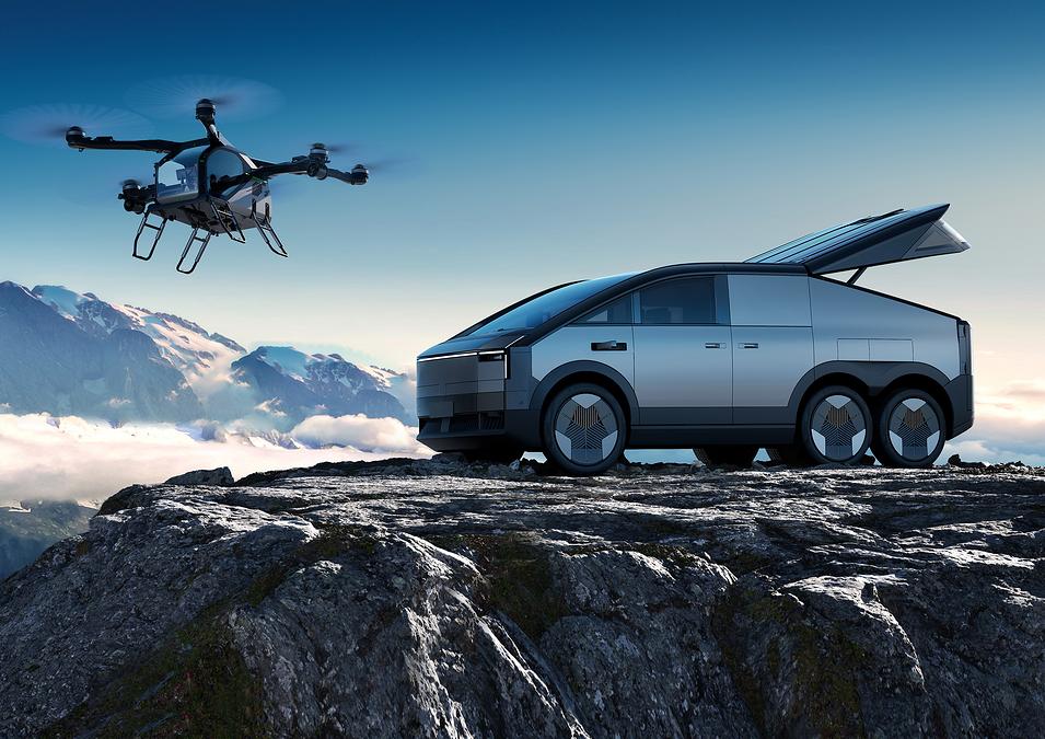 The ARIDGE Modular Flying Car, known as the Land Carrier, is a split-design flying car that integrates air and ground mobility, supporting diverse use cases and advancing the widespread adoption of low-altitude travel.This flying car pioneers a modular air-ground platform that seamlessly integrates a six-wheel hybrid ground vehicle with a retractable flight module, enabling smooth transitions between driving and flying while expanding the boundaries of future urban mobility. Inspired by aircraft carriers, it adopts a floating geometric form, a full-width tech light bar, foldable rotor arms, and a multimodal cabin, together creating a highly distinctive futuristic transport aesthetic.